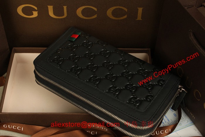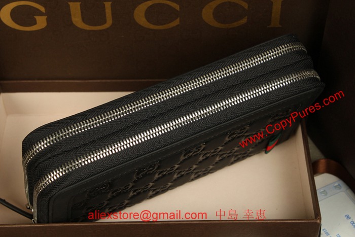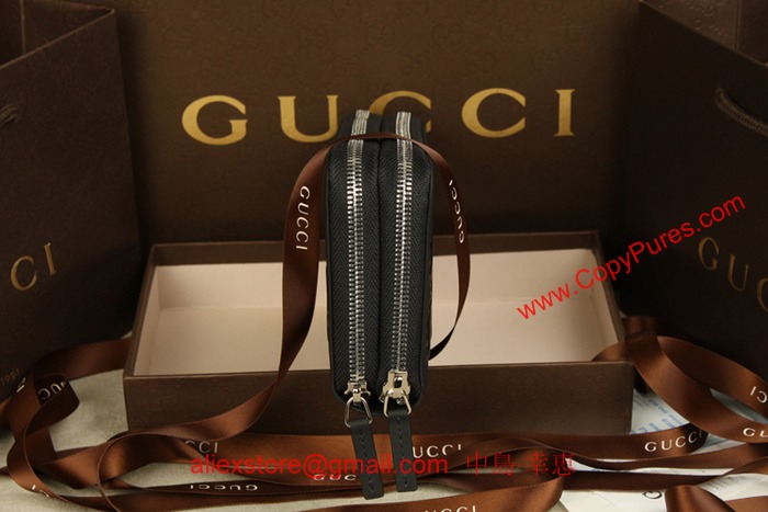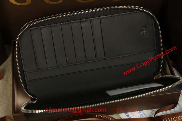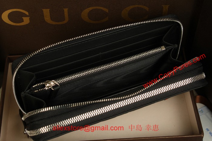 GUCCI グッチラバーコーティングレザー ウェブループダブルジップ ラウンドファスナー長財布 ブラック 295830