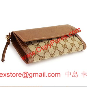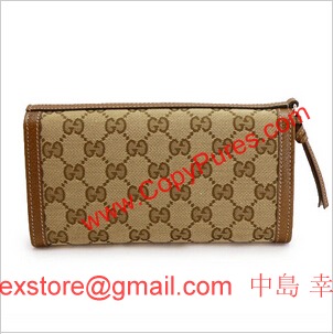 GGキャンバスとしっかりしたレザーの二つ折り長財布です。レザーの素材感とゴールドチャームが特徴です。フラップ部分のロゴは主張しすぎず、好感のもてるデザインになっています。収納はポケットが多く使い勝手が良いひと品です。 |