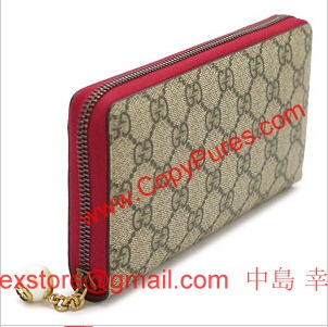 汚れやキズに強いPVCとGG柄が特徴のラウンドファスナー長財布です。GGロゴ入りのパールが揺れる上品なファスナーチャームと落ち着いた雰囲気が魅力のデザインです。ラウンドファスナータイプで収納力もあり、中身がこぼれにくく、デザイン・機能ともに秀逸です。 |