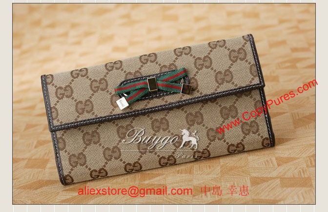 グッチ 長財布 167464 FCEZG 9791GG柄(GGキャンバス) ベージュ/ダークブラウン 金具付き プリンシー ウェビングリボン