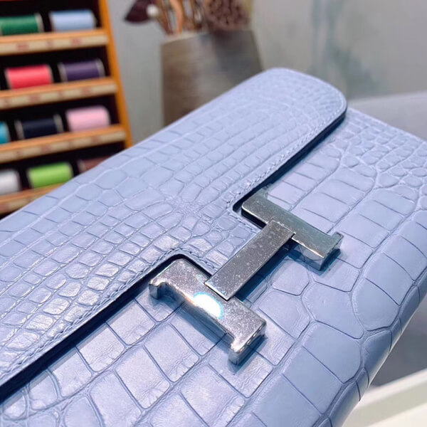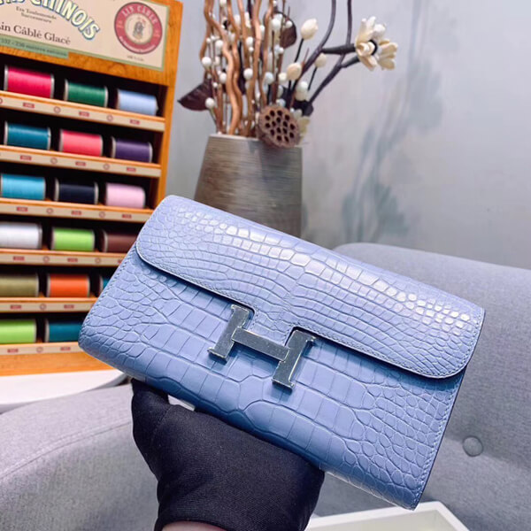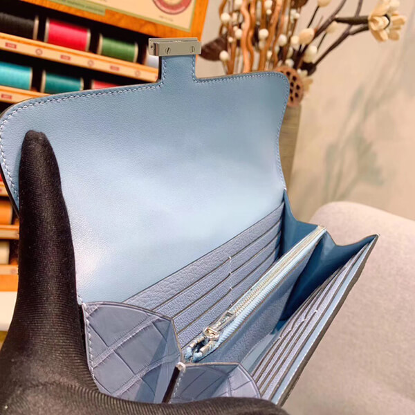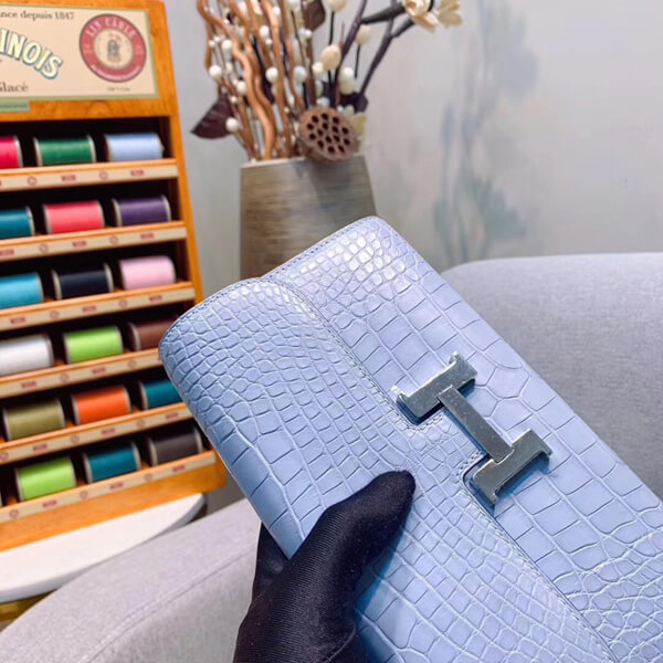 革のダイヤモンド、「クロコダイル」のコンスタンスロングが入荷しました!シャイニング加工を施したクロコはまるで宝石のように光り輝いて私たちを魅了してやみません。耐久性は牛革の10倍程度と言われる、クロコダイルレザー。長年愛用し経年変化を楽しめるのがクロコの醍醐味ですね。大切に使い続けることで味が出て「自分のものとして育てていく」そんな感覚を楽しむことができます。シャイニングクロコダイルは、愛用していくことで光沢が落ち着いていきシックな印象に変化していきます。またコンスタンスロングは、カード収納が14、ファスナーポケットが1、横長収納が大小7(裏に1含む)と、収納力抜群!