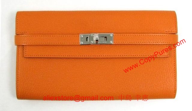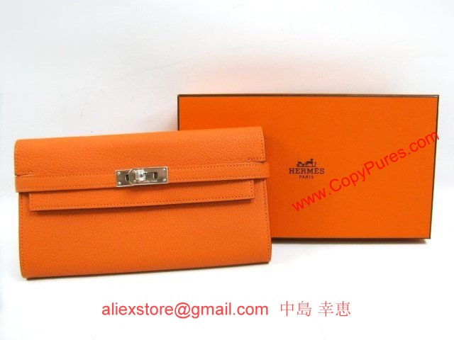 エルメス(HERMES)ケリーウォレット 長財布シェーブル/オレンジ(金具:シルバー) 2104100804174