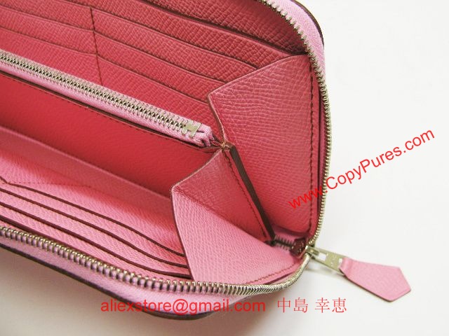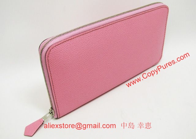 エルメス(HERMES)アザップロング ラウンド長財布ヴォーエプソン/ピンク(金具:シルバー) 2106800028164