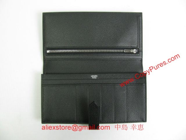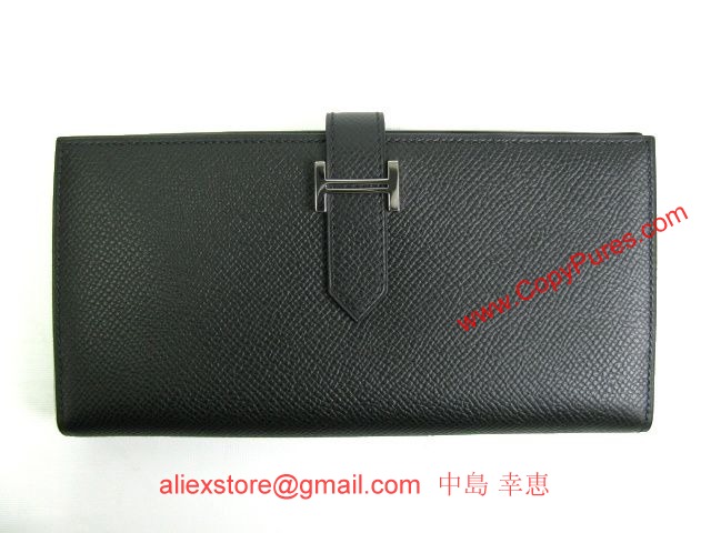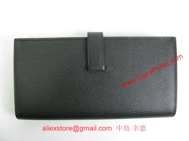 HERMES(エルメス)ベアン二つ折長財布スフレ ヴォーエプソン/ブラック(シルバー金具)
