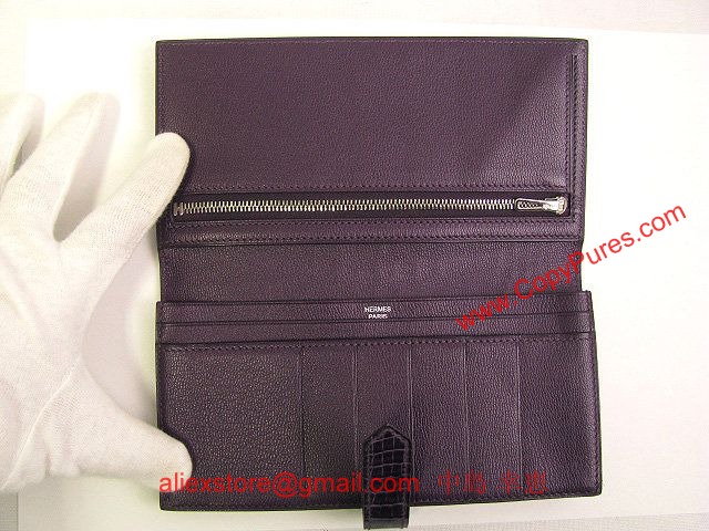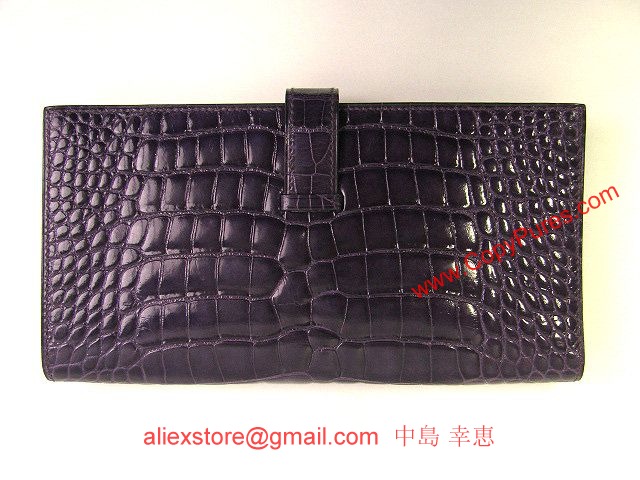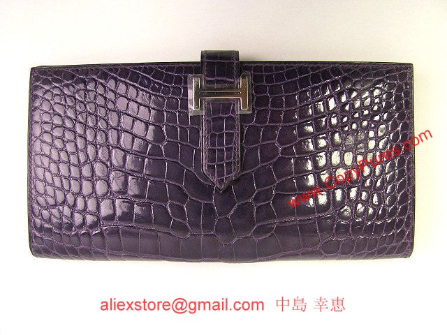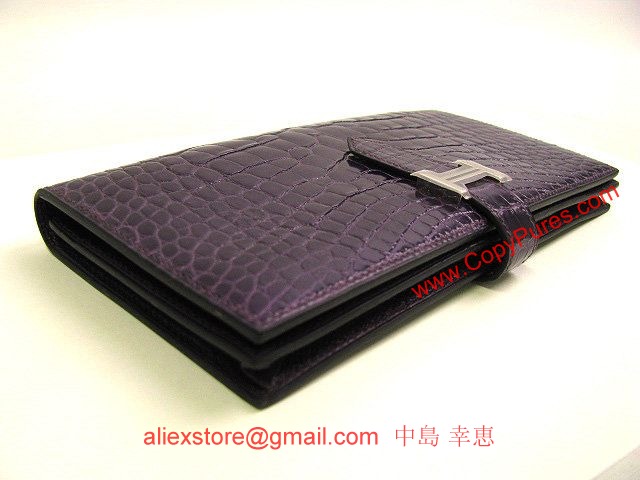 HERMES(エルメス) ベアンスフレ二つ折長財布 アリゲーター/アメジスト(金具:シルバー)