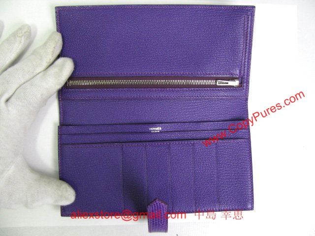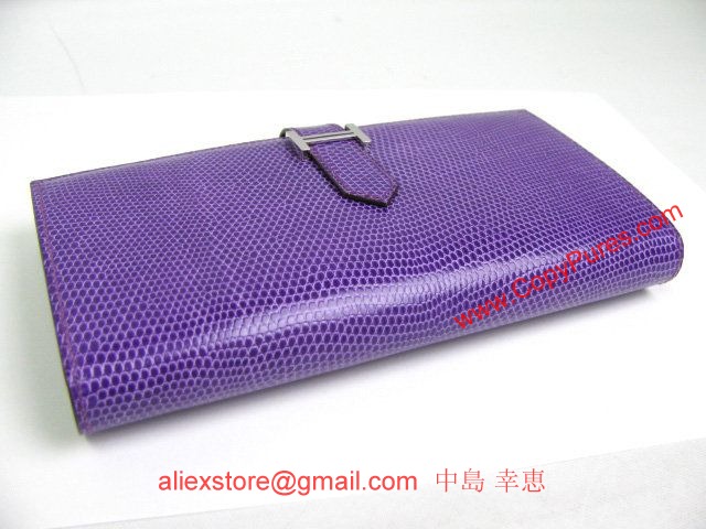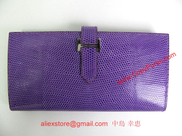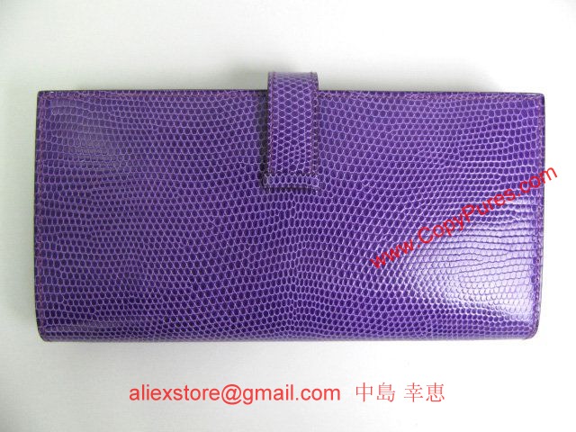 HERMES(エルメス)ベアンスフレ二つ折長財布 リザード/バイオレット(金具:シルバー)