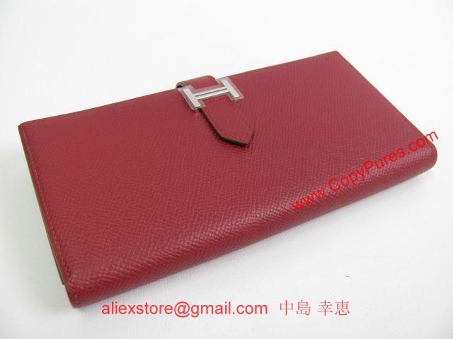 HERMES(エルメス)ベアンスフレ 二つ折長財布 ヴォーエプソン/ルビー(シルバー金具)