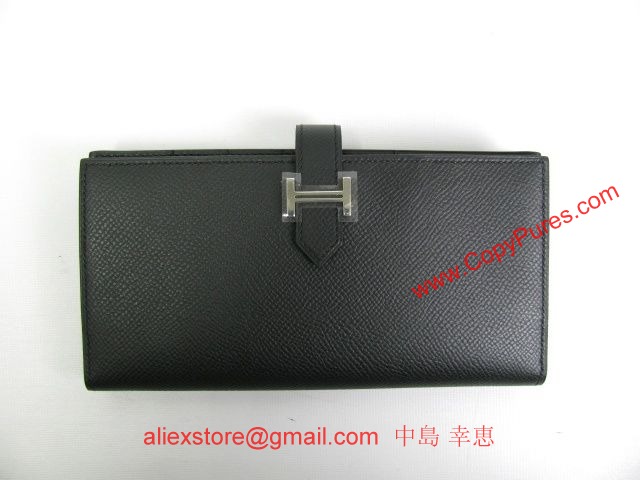HERMES(エルメス)ベアンスフレ 二つ折長財布 ヴォーエプソン/ブラック(シルバー金具)