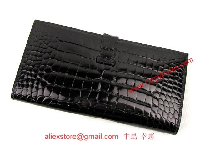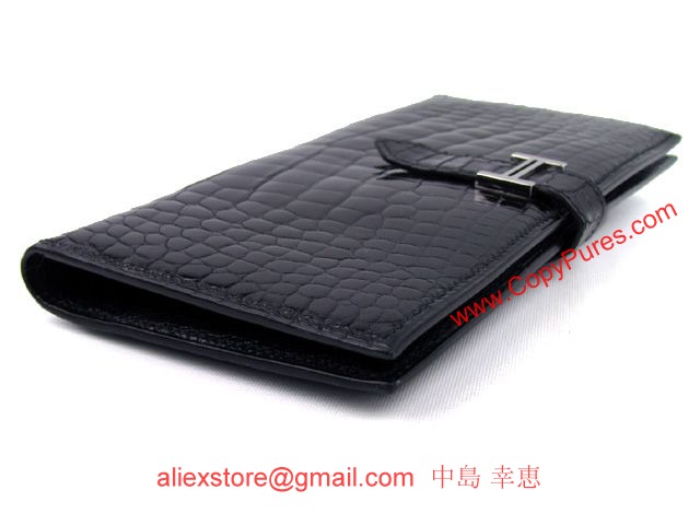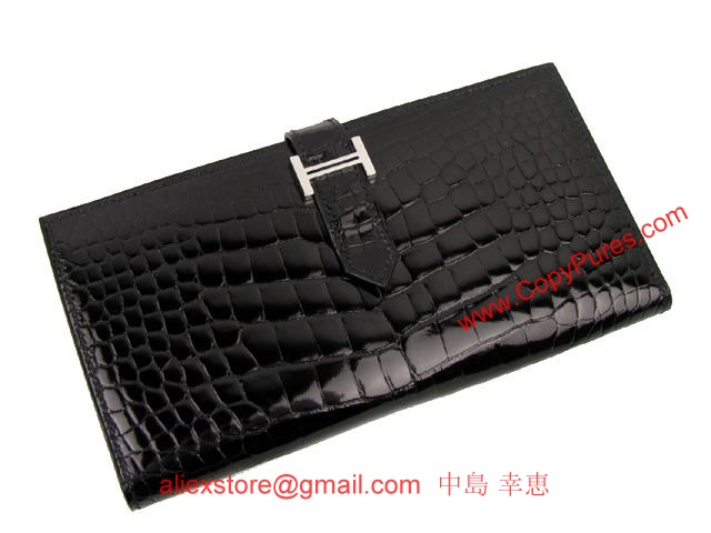 HERMES(エルメス)ベアン二つ折長財布 アリゲーター/ブラック
