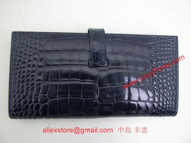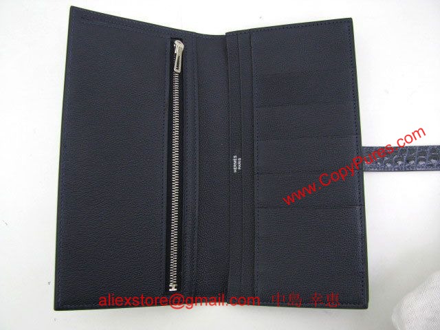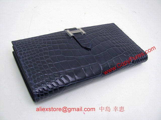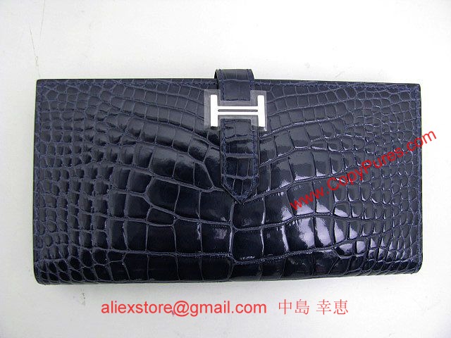 HERMES(エルメス)ベアンスフレ二つ折長財布 アリゲーター/ブルーアビス(金具:シルバー)