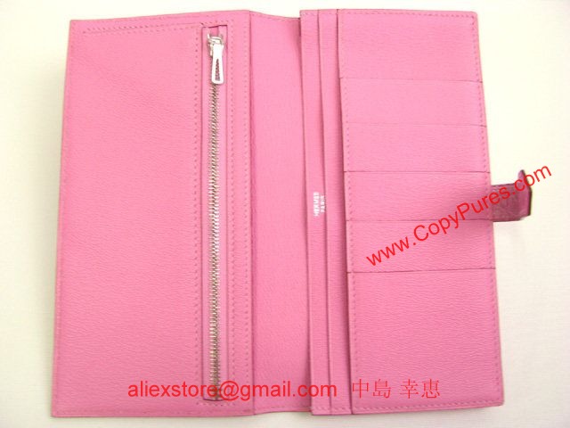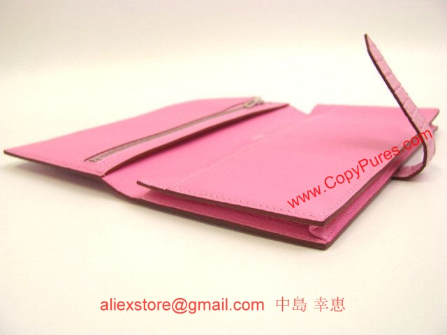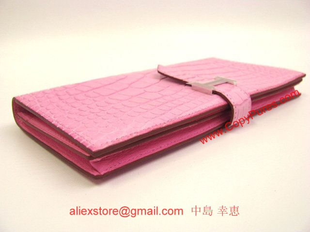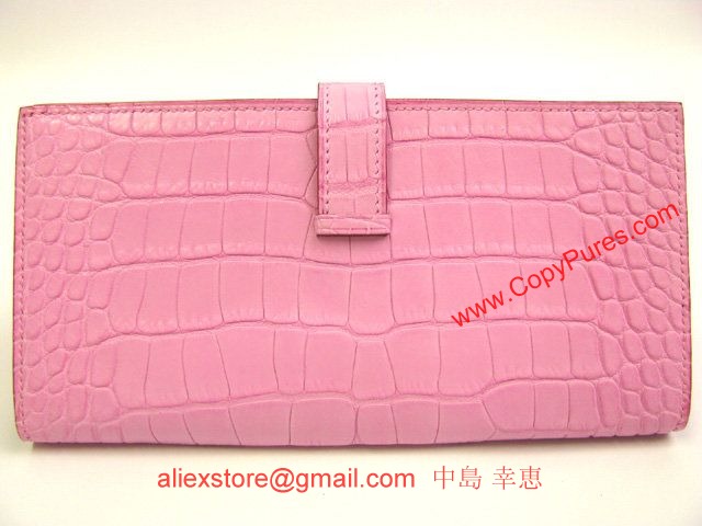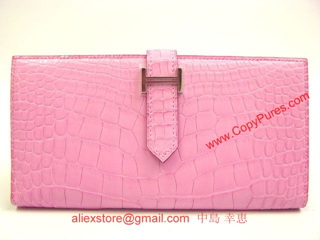 HERMES(エルメス)ベアンスフレ二つ折長財布 アリゲーターマット/ピンク(金具:シルバー)