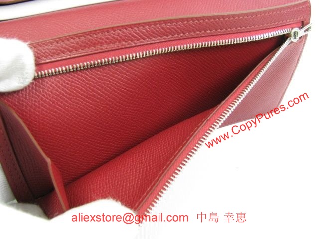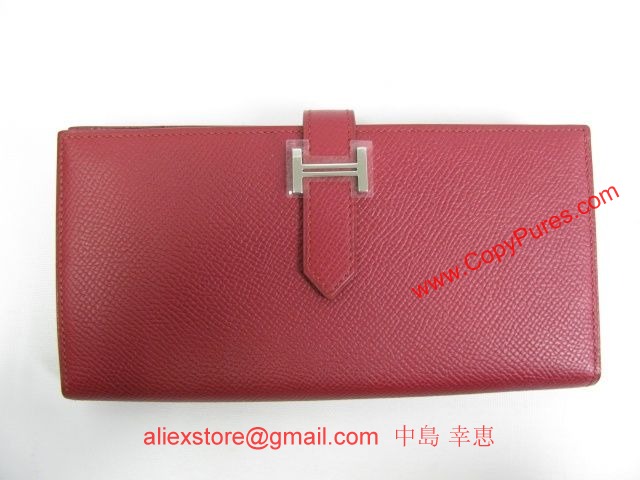 エルメス スーパーコピー ベアンスフレ 二つ折長財布 ヴォーエプソンルビー(シルバー金具)