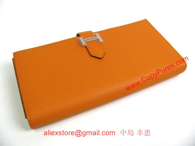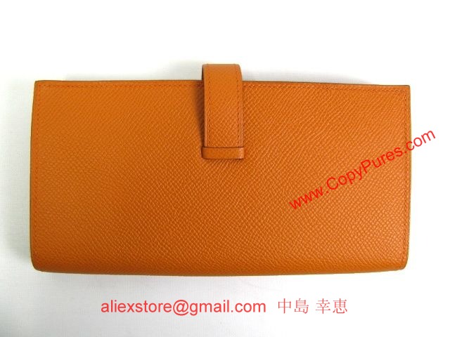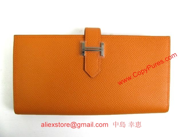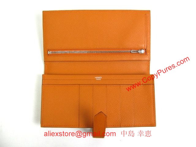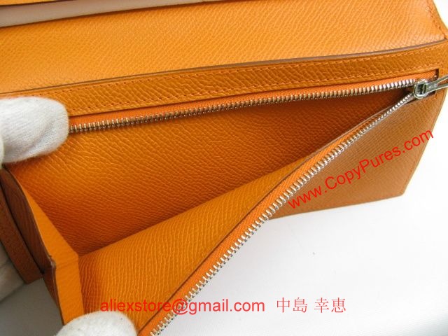 HERMES(エルメス)ベアンスフレ 二つ折長財布 オレンジ(シルバー金具)