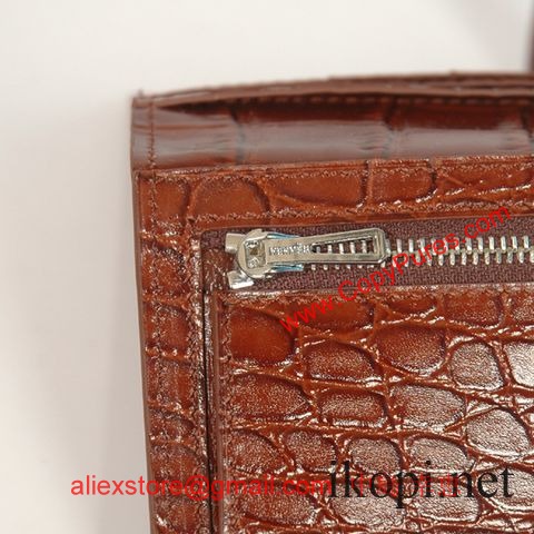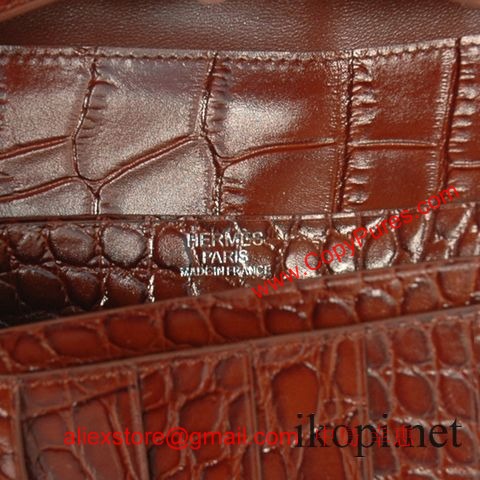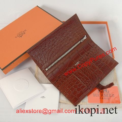 エルメスコピー 長財布 ベアンスフレ マチ有り ブラウン×シルバー金具 アリゲーターマット hermeswallet31