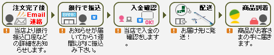 3. 弊社が在庫を確認後、商品価格&送料などの合計金額、 送金先銀行口座番号を連絡 させて頂きます。