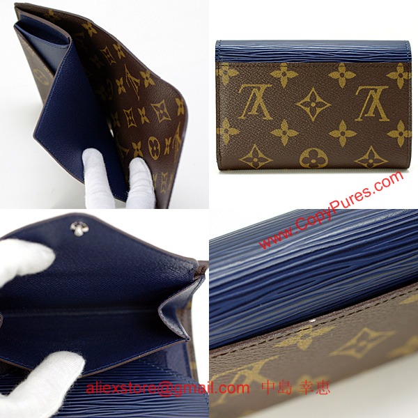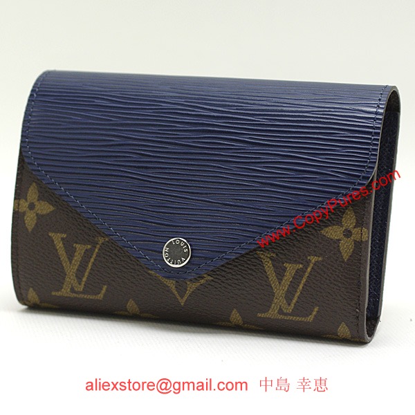 ルイヴィトンポルトフォイユマリールーコンパクトモノグラム×エピレザー三つ折り財布アンディゴブルーM60496