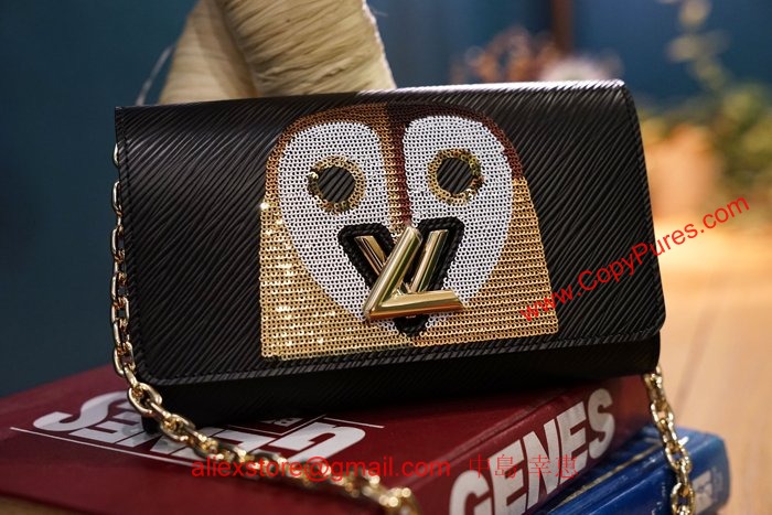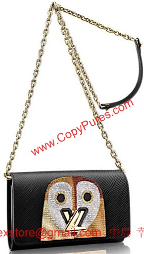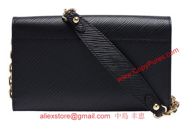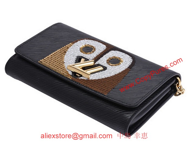 エピ・レザーのエレガントで実用的な財布「ポルトフォイユ・ツイスト チェーン」。ショルダーバッグやクロスボディとしてもご使用いただけます。指でひねると「L」が「V」になる遊び心溢れるツイスト開閉式のロックをあしらいました。