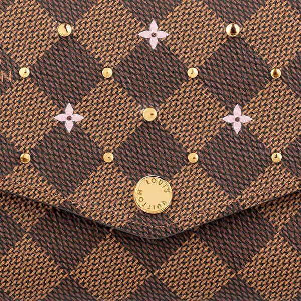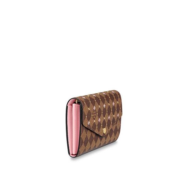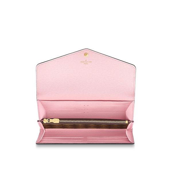 「ダミエ・エベヌ スタッズ」コレクションに相応しく、小ぶりなゴールドカラーのスタッズとピンクのモノグラム・フラワー モチーフをあしらい、シックかつフェミニンに仕上げた「ポルトフォイユ・サラ」。エンヴェロップ型のフラップを開くと見える、同系色のピンクレザーのライニングが個性を際立たせます。整理しやすい内装と豊富なポケットやカードスロットが魅力の財布です。
