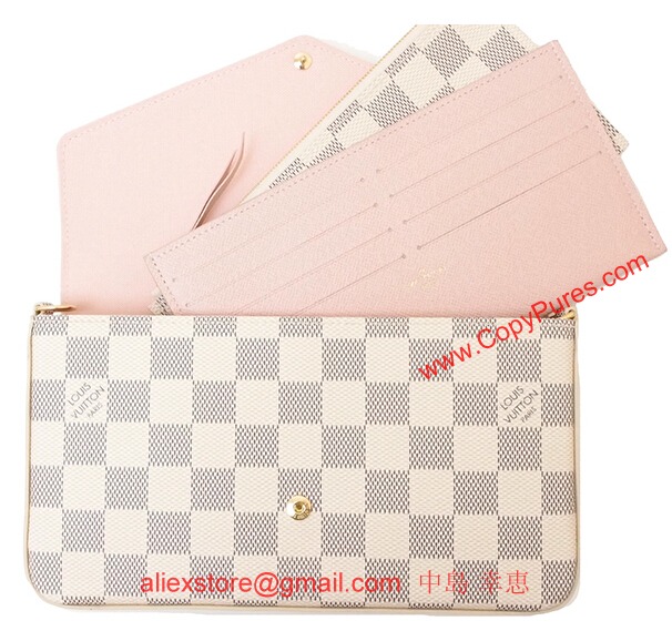 取り外し可能な内ポケットを備えた、エレガントな「フェリーチェ」。ダミエ・アズール キャンバスを使用した、日常の必需品を収納するのに充分なサイズのです。取り外し可能なゴールドカラーのチェーン付きで、財布としてだけでなく、グラマラスなショルダーバッグやクラッチバックとしてもお楽しみいただけます。