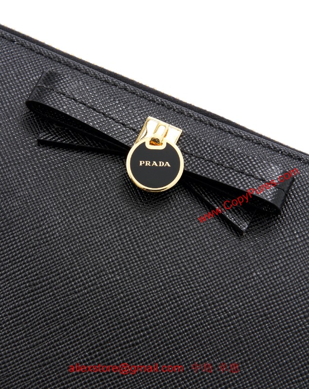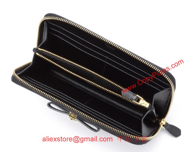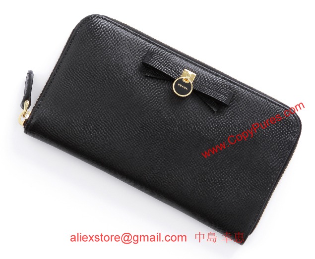 プラダ 2013年春夏新作SAFFIANO FIOCCOリボン&メタルロゴ付 ラウンドファスナー 長財布 1M0506 2A18 F0002