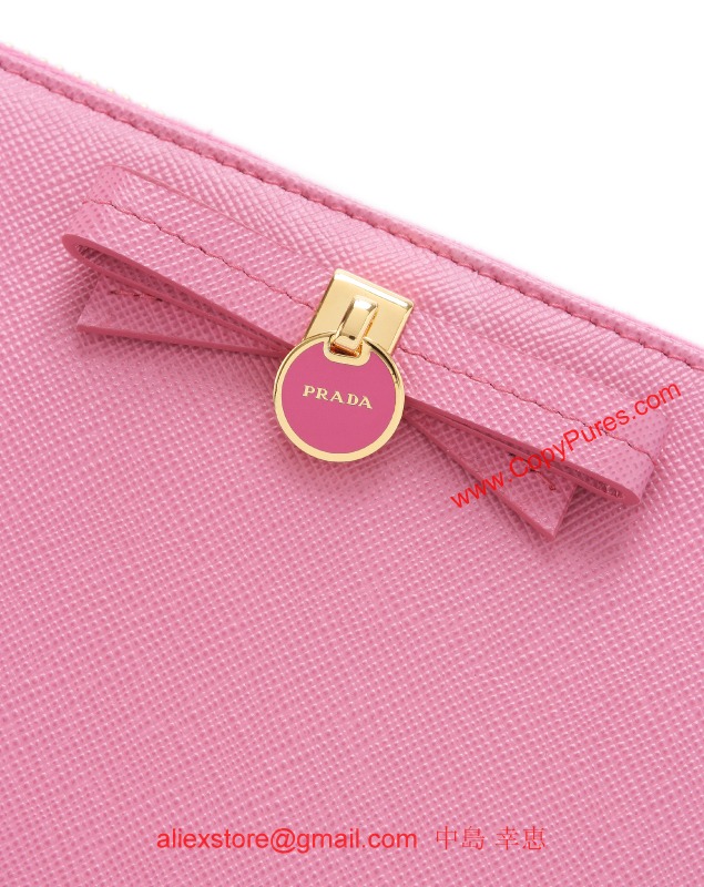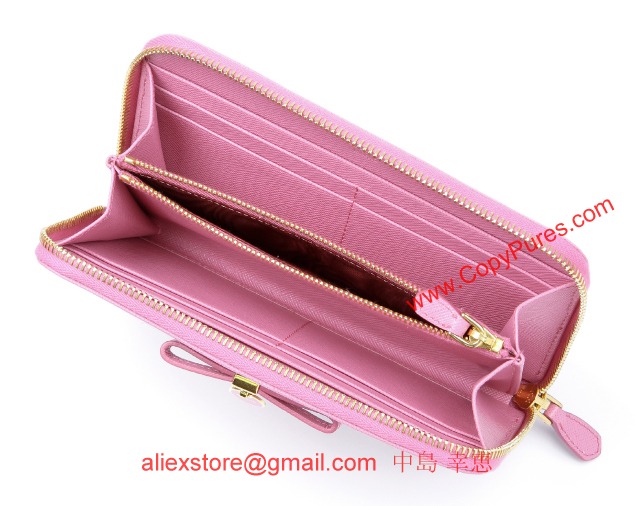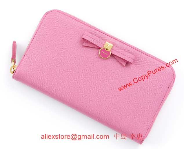 プラダ 2013年春夏新作SAFFIANO FIOCCOリボン&メタルロゴ付 ラウンドファスナー 長財布 1M0506 2A18 F0638