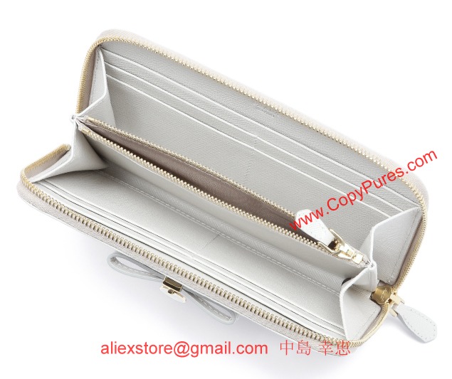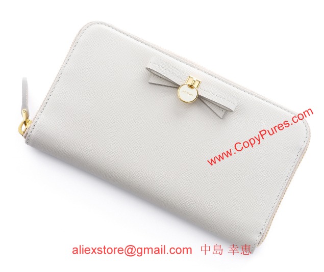 プラダ 2013年春夏新作SAFFIANO FIOCCOリボン&メタルロゴ付 ラウンドファスナー 長財布 1M0506 2A18 F0K74