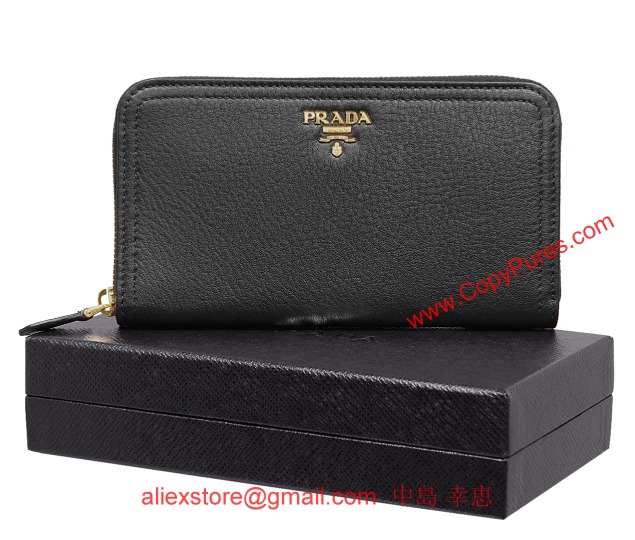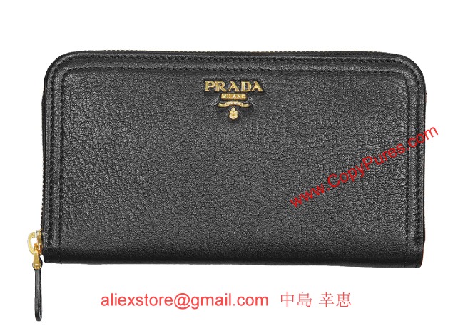 プラダ 12/13年秋冬新作VIT.DAINOメタルロゴ付 ラウンドファスナー 長財布 1M0506 BBE F0002