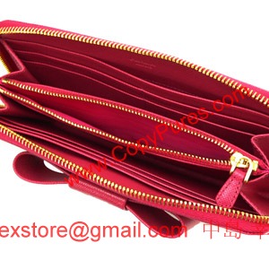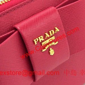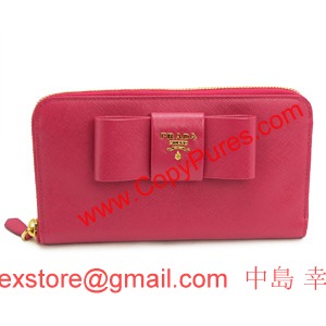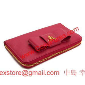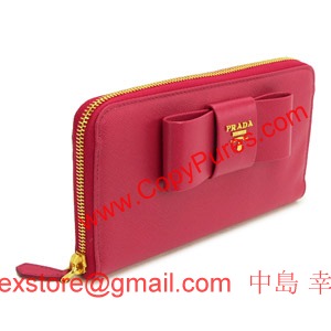 プラダ 長財布 PRADA プラダ 財布 ラウンドファスナー リボン サフィアーノ 型押しレザー ペオニア 1M0506 SAF.FIO