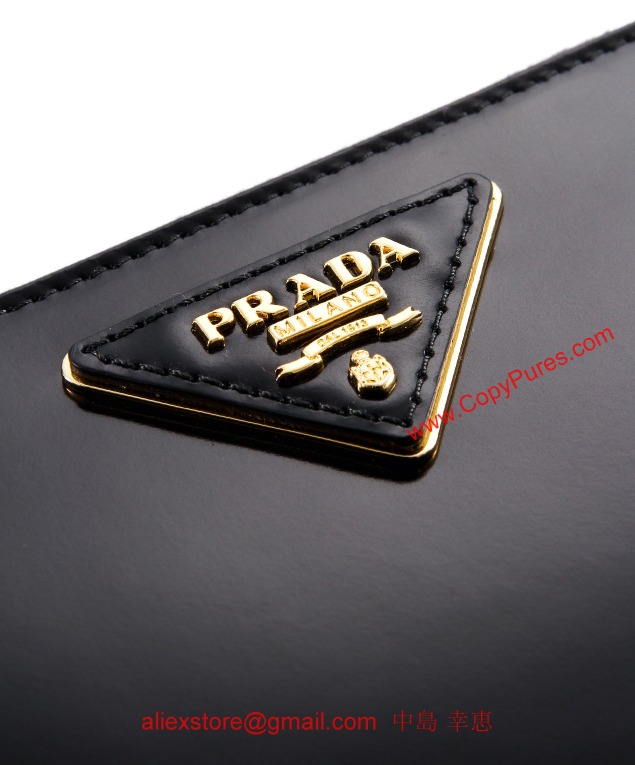 上質なカーフスキンをガラス加工で仕上げ、プラダらしいエレガントな表情に仕上がっています・