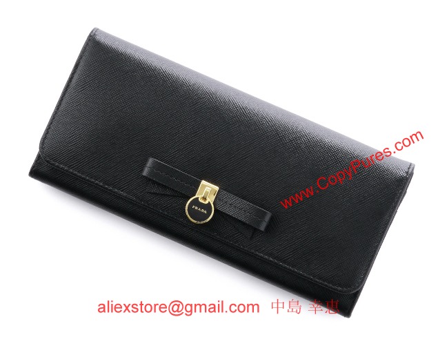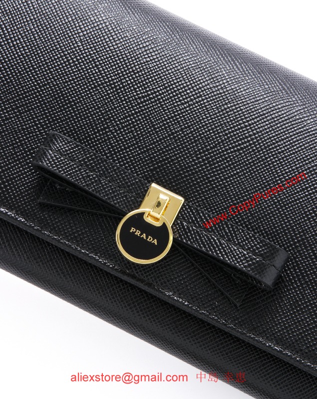 プラダ 2013年春夏新作SAFFIANO FIOCCOリボン&プレート付 二つ折り長財布 1M1132 2A18 F0002