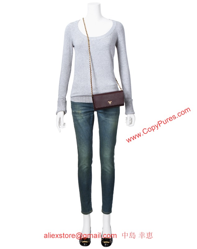 プラダ 12/13年秋冬新作SAFFIANO METALチェーンショルダー付 二つ折り長財布 1M1290 QWA F0007
