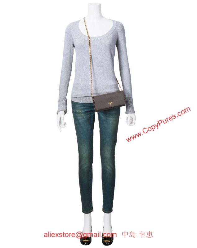 プラダ 12/13年秋冬新作SAFFIANO METALチェーンショルダー付 二つ折り長財布 1M1290 QWA F0417