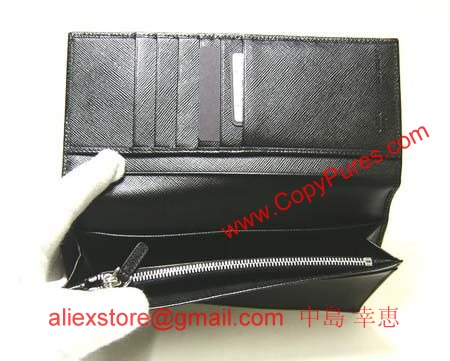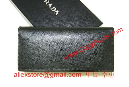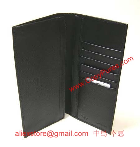 プラダ 激安 サフィアノレザー 二つ折長財布(ブラック)2M0836-P27